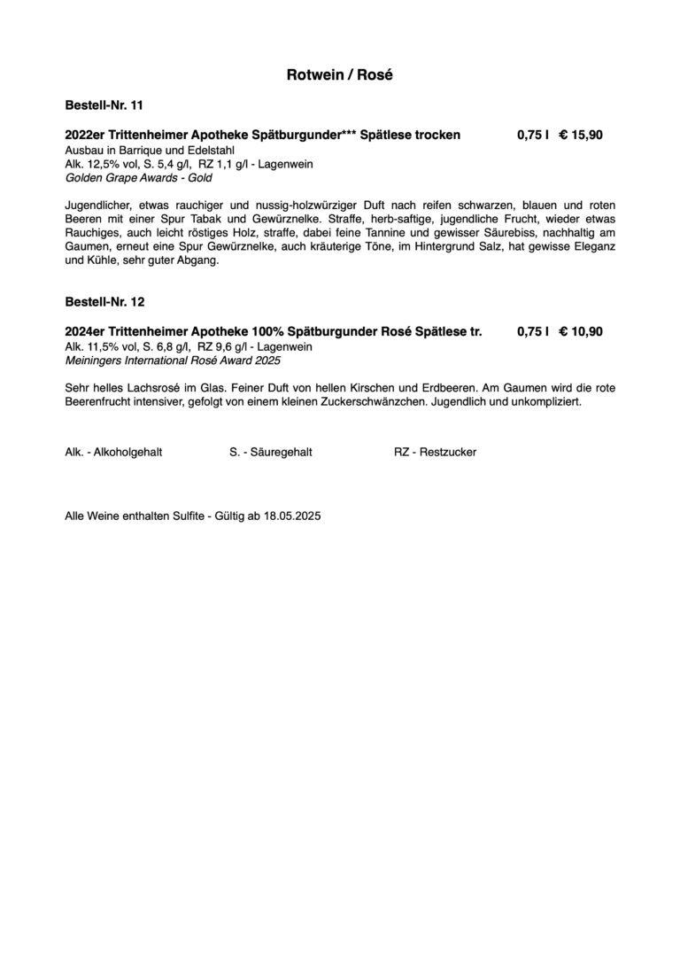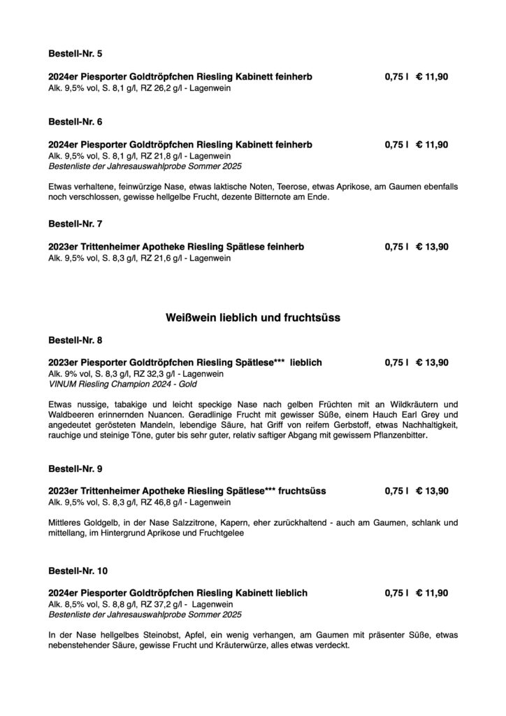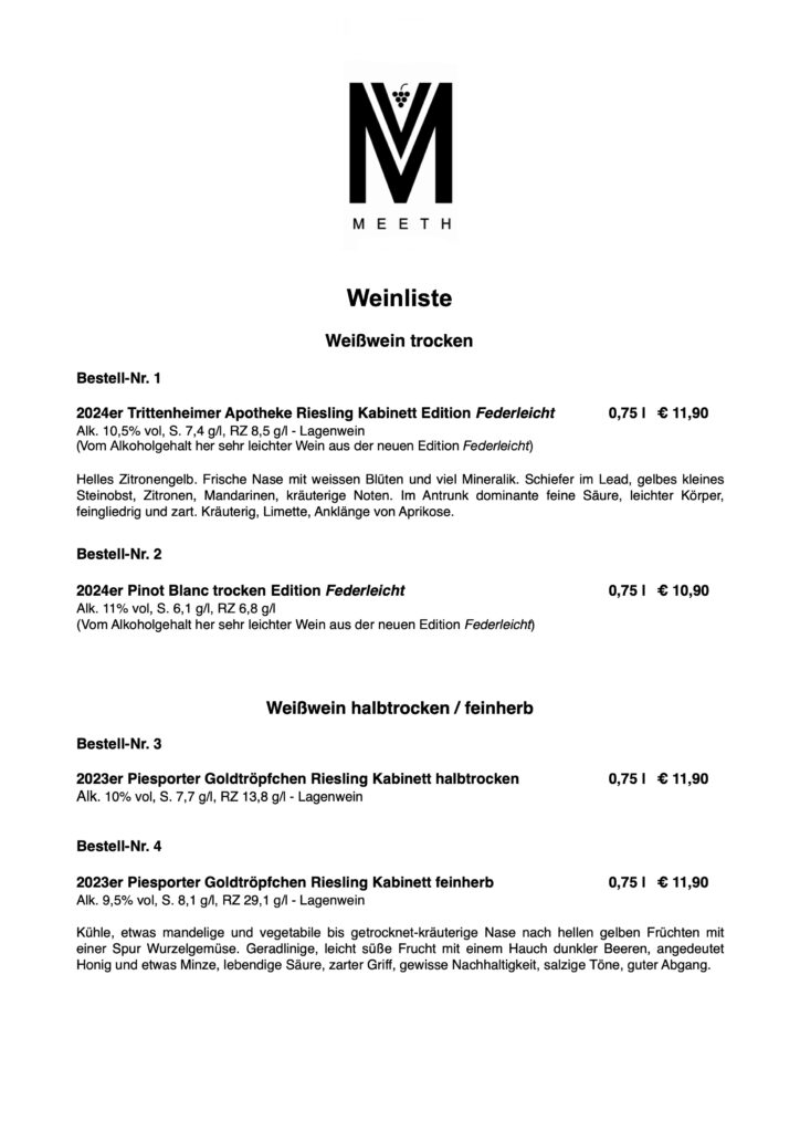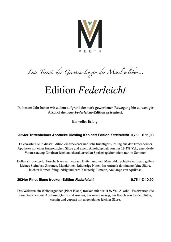 Es werden Riesling- und Spätburgunder-Weine ausschließlich aus Steillagen-Weinbergen hergestellt. Diese liegen in den Gemeinden Piesport (Piesporter Goldtröpfchen) und Trittenheim (Trittenheimer Apotheke).